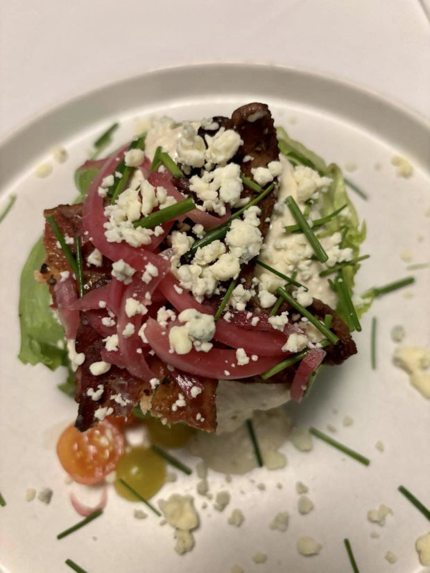 - Wedge Salad – served with black pepper bacon, Point Ryes blue cheese and heirloom tomatoes.