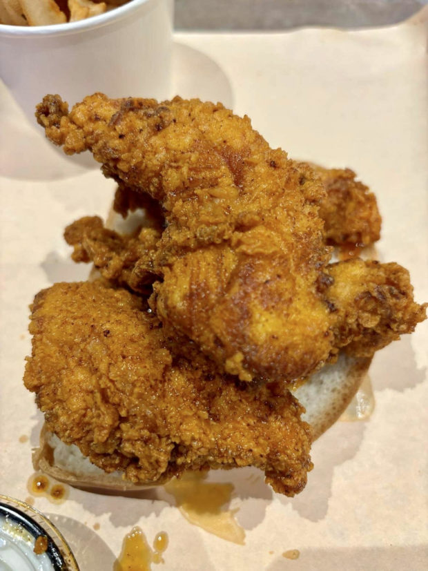 My sweet, smoky sandwich put me in the mood for some HEAT, so next up was South Hot Chicken. Their chicken tenders are tasty and super crunchy which I loved, and the fries were hot and nicely salted. There are several dipping sauces to choose from, the BBQ and Honey Mustard sauces were my favorite. Don’t forget to try their Pecan Pie stuffed cookie, it’s a perfect end to your meal!