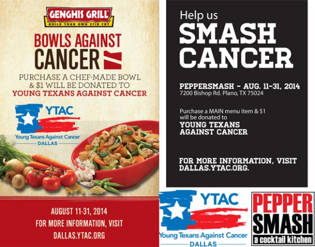 The Dallas chapter of Young Texans Against Cancer (YTAC) and restaurants Genghis Grill and Pepper Smash are partnering to help raise money for the fight against cancer now through August 31.