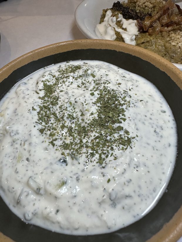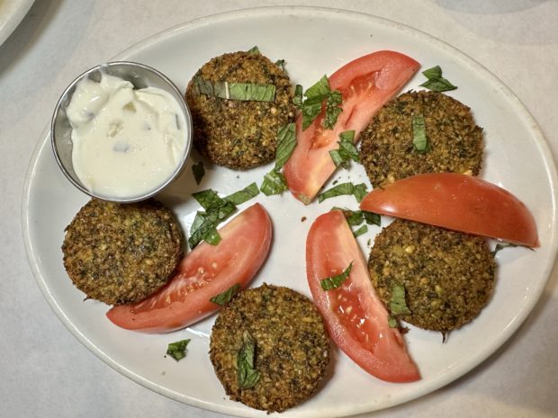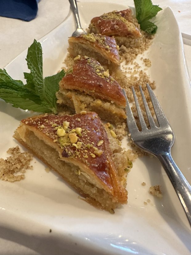 This show stopper here is the Feast Plate with five skewers of kabobs including chicken, spicy chicken, ground sirloin and lamb. Served with white saffron basmati rice and grilled veggies and feeds 4-5 hungry people. Don’t forget to top the kabob with sumac seasoning! This appetizer is a common one at any Persian restaurant. Order one for the whole table. Enjoy fresh herbs, pita bread, Feta cheese and a few other nibbles. The Falafel here is my favorite appetizer! This appetizer comes with five pieces of deliciously deep fried grounded chickpeas. Another popular and shareable appetizer is the roasted eggplant dip with pita bread. The Mirza Ghasemi is a another blended eggplant, but mixed with tomatoes, garlic and scrambled eggs. This Persian Cucumber / Tomato salad is a refreshing appetizer or side that goes well with any dish. Hand rolled, homemade grape leaves comes in a set of five. Share with the table, or just keep them all for yourself!Enjoy dipping your pita bread in this slightly cool yogurt & chopped cucumber mix topped with mint. Feeling the mint vibes so far? Order a bottle of the ever-popular Doogh, also known as a fizzy yogurt drink blended with mint. After your meal, relax with hot Persian black tea and drop in a sugar cube for sweetness. The Baklava was phenomenal! Don’t miss out on a bite for dessert at Giovanni’s.