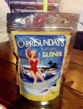 Bottled Blonde features an extensive drink menu, offering over 40 local and craft beers, 15 craft cocktails, and a selection of wines. One of their notable drinks is the Adult Capri-Sunday, a specialty cocktail packaged in a bottled blonde pouch made with vodka and fresh fruit juices. It’s a great drink to sip on while on the Bottled Blonde patio for Sunday Funday!