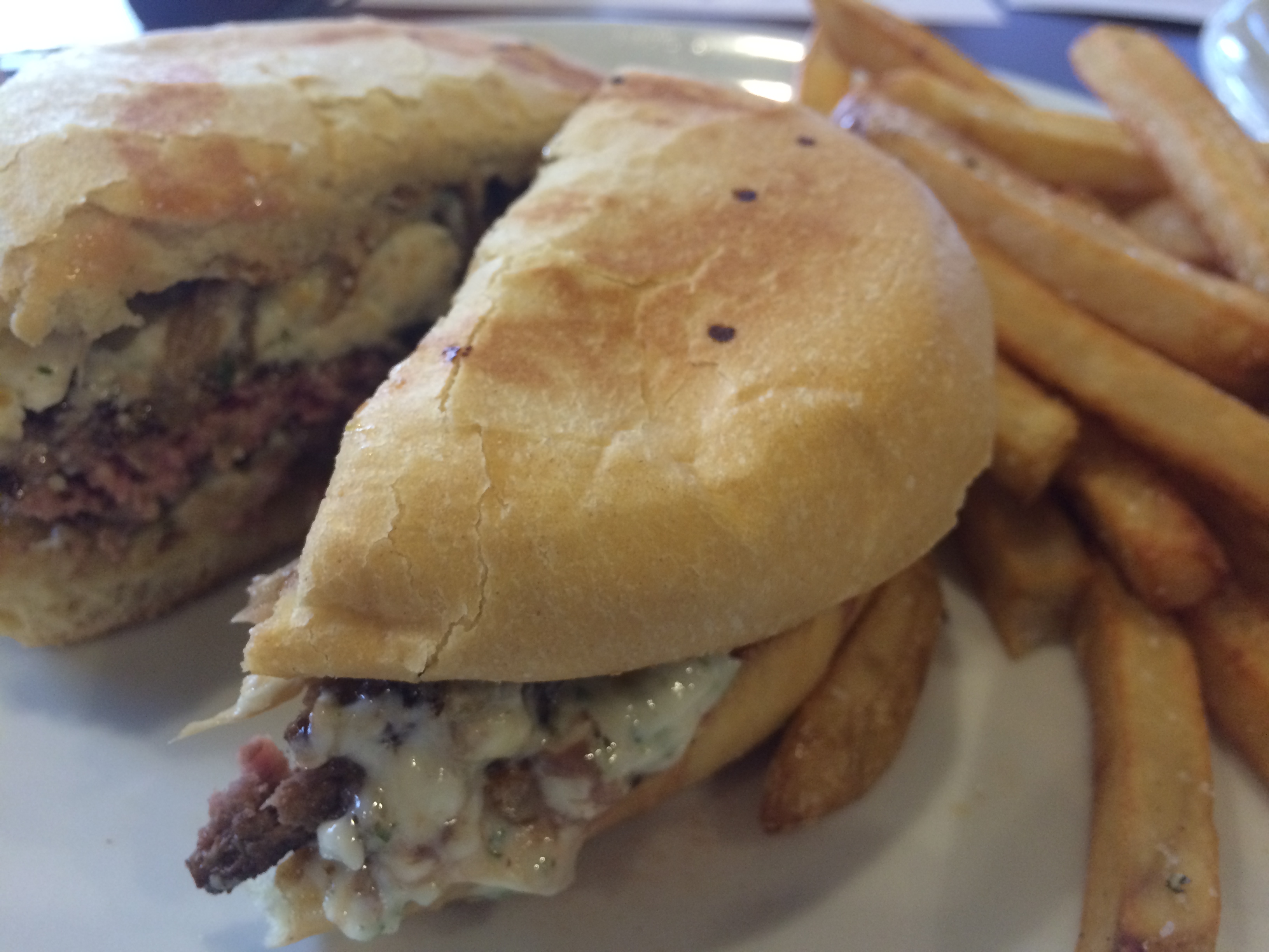 We also ordered the Grilled Salmon Filet served with roasted garlic mashed potatoes and a lemon caper butter. Moist and buttery on the inside with just the right amount of crisp from finishing it under the broiler on the outside. Coming from a seafood lover, this “bowling alley” definitely gets it right.