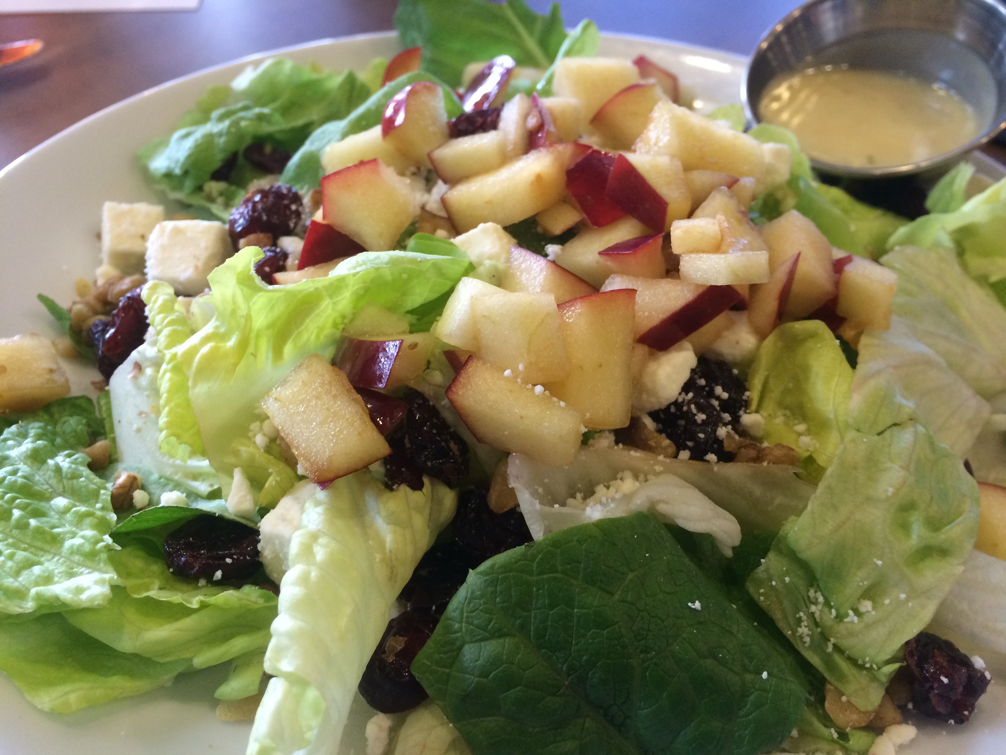 The salads are another option if you’re still sticking to the healthy route. We sampled the Autumn Harvest Salad with apples, feta, dried cranberries and a nice Dijon vinaigrette dressing.