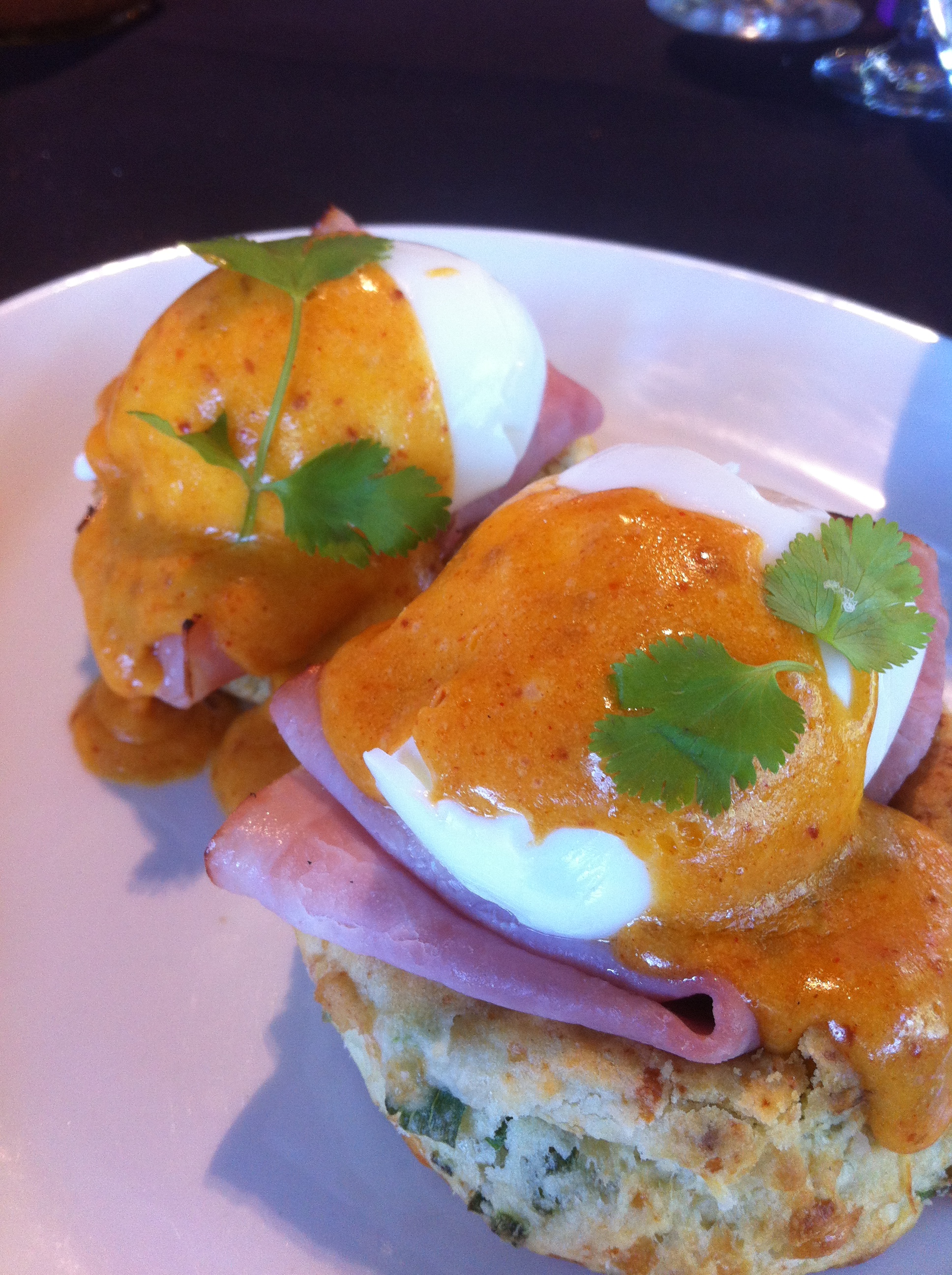 Now, on to the main course, for which I chose The Grille Benedict ($13). I’ve got to say, of the various benedicts I’ve had in town, most fall short when it comes to finding a way to differentiate their dish from the standard English muffin topped with ham, egg and hollandaise. Henschen has broken away from the pack with this creation. He lays a hearty foundation with a scallion & white cheddar biscuit, and then tops it with ham, a perfectly poached egg, and chipotle hollandaise. While my dish didn’t come with any sides (those are ordered separately), I was easily full from the hearty biscuit base, and the flavorful kick of the hollandaise brought my dish to a tasty finish.