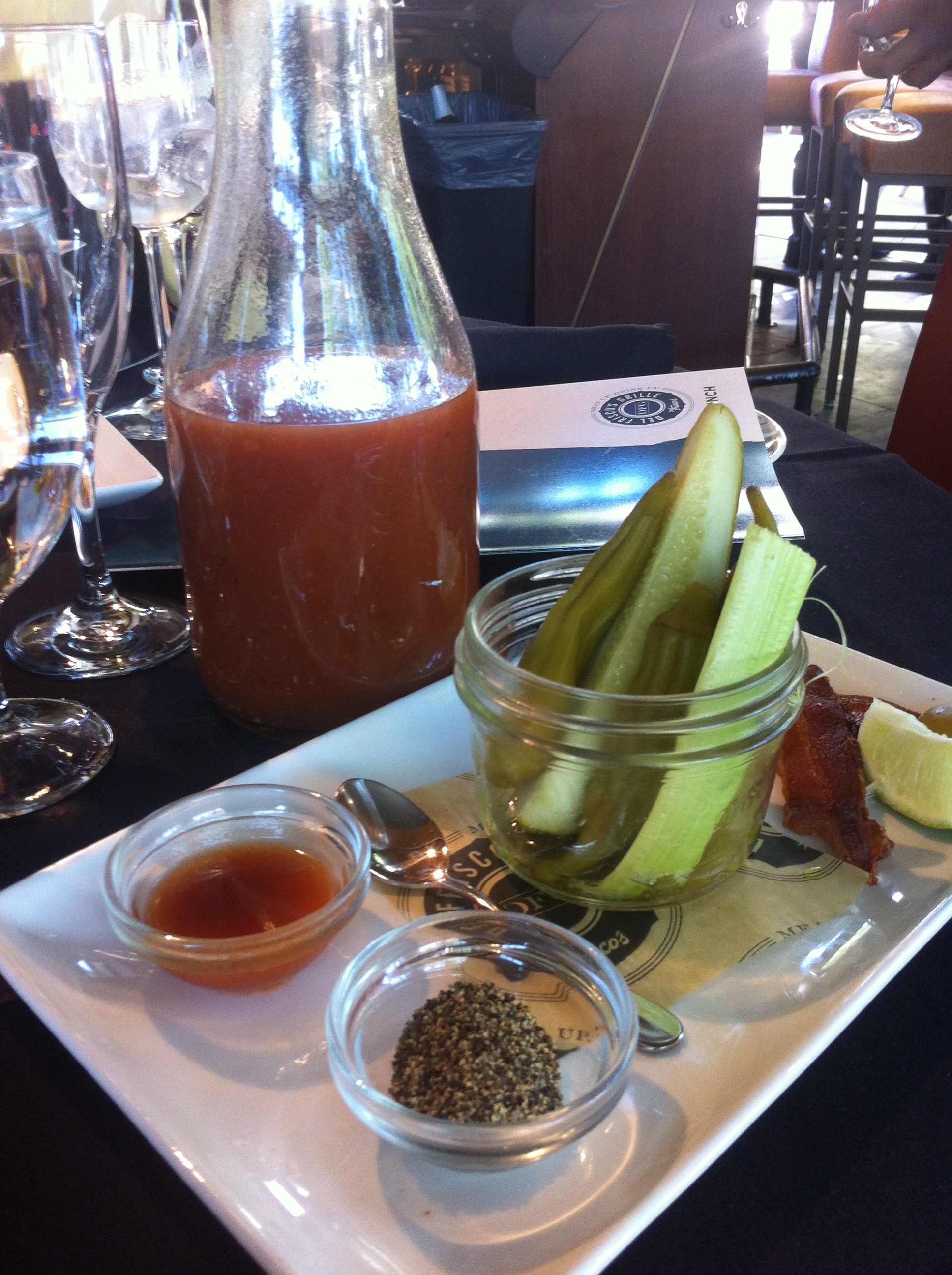 As you can imagine, all this can make a food nerd thirsty, so I was pleased when the attentive wait staff poured me a perfectly spicy Bloody Mary. Now, let’s be honest…a Bloody Mary is a very personal thing “ some like ˜em spicy, others like ˜em salty, tangy or even packed with all the fixins. The folks at DFG have found a way to appease all Bloody Mary drinkers with its at-table plate-o-extras (I totally just made that name up). It’s all the beauty of a BYOBM bar, without ever having to leave the table, its a beautiful thing, trust me¦