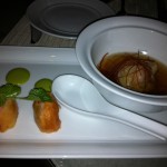 I was fortunate to try this menu at a media dinner. The Chinese New Year menu will be available alongside the a la carte menu now through February 3, with a special appearance by Chef Wolfgang Puck on the evening of February 1, 2012. The celebratory menu is priced at $125 per guest.