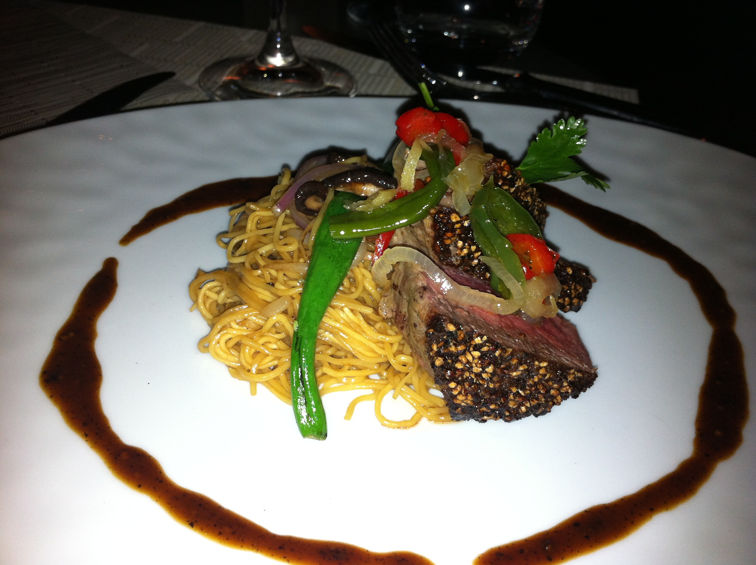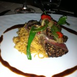 “Wow!” is all that I can say about this cake. It is served at perfect temperature – just a little warm. It is wonderful way to end this dynamic menu.