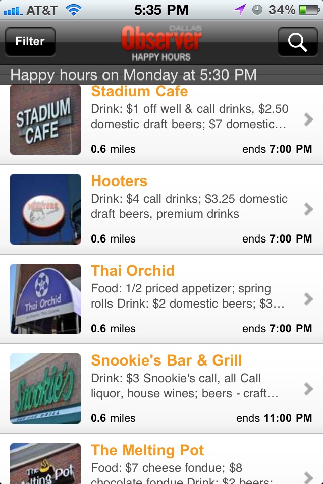 It’s 5:00 somewhere? Well, here actually. Wondering who is having happy hours near you? Check out Happy Hour iPhone app. It says Dallas Observer in the header but the app itself is apparently made by GoTime and works in various cities. The Dallas version must just pull from Dallas Observer’s lists. It’s good stuff… when I remember to use it.