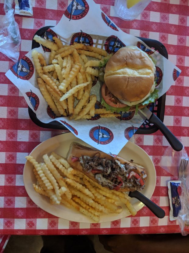 Next up, was Trailboss Burgers, which is conveniently located next door to Riscky™s Barbeque. Trailboss™ claim to fame is that they have the biggest variety of burgers in the Stockyards including Buffalo Burgers. We tried out the staple cheeseburger and Philly Cheesesteak. We opted for pepper jack cheese on the burger and it was dressed with lettuce, pickle, tomato and onions. The burger was served with crinkle cut fries and had a great amount of flavor. The cheese steak was served on a buttery bun with tender beef and delicious red peppers. It was not exactly a standard Philly cheese steak but a great variation of one.