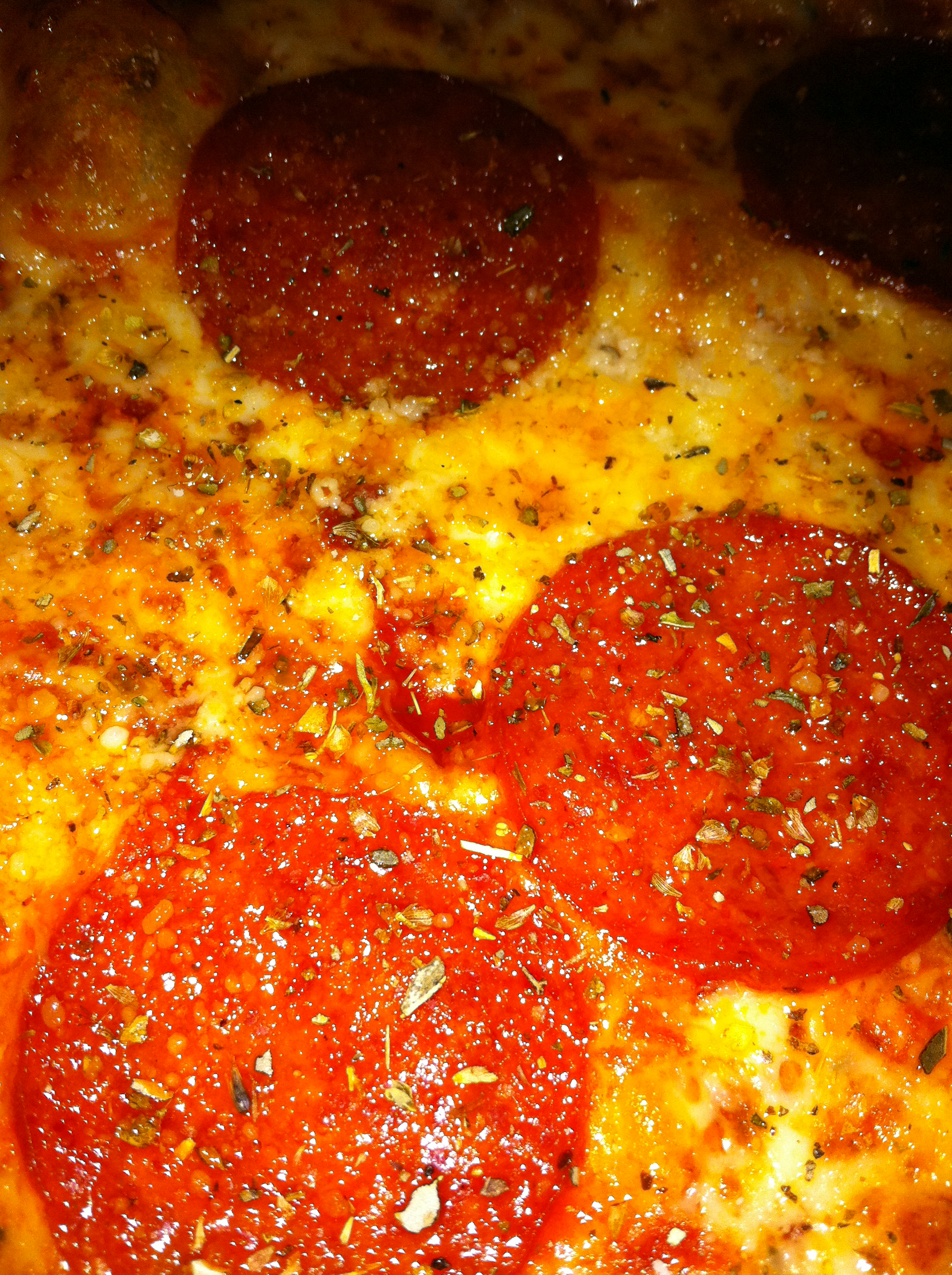 This place is 15 miles away, in the Addison Circle, and we have to pass maybe 200 restaurants to get there, but it was totally worth the trip. As we got closer and the anticipation was building, I made the decision to blog about it for my initial DallasFoodNerd contribution. My plan was to take pictures and somehow savor the dish more so that I could properly describe it. After we were served our salads I was so eager to dive into it, that I totally forgot that I was going to prop out the table and take some artful photographs of this wonderfulness. I succumbed to gluttony and DOVE right into my salad (FYI, I had a slice of greasy, and delicious pepperoni pizza too). So I had eaten half the salad before I came to my senses, and my wife had a small with the dressing on the side. Here is what it looks like halfway thru¦