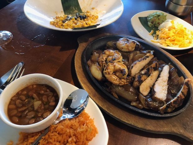 My dining companion ordered classic fajitas but selected the shrimp and chicken combo. You can even order the shrimp brochette with bacon-wrapped applewood shrimp. Mmm! All of the fajita plates are served with caramelized onions, guacamole, cheese, sour cream, guajillo rice and charro beans. You can never go wrong with fajitas. All of the Mi Dia entrees are pretty big, so expect to ask for a to-go box. 🙂