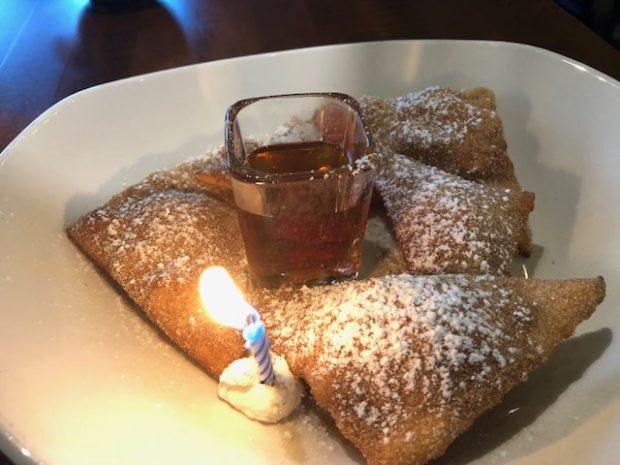 Since it was my birthday, the server surpised me with a candle when I ordered the sopapillas. How sweet! This pastries is dusted with sugar and cinnamon and comes with a lot of honey in a cute glass.