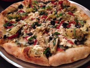 Now to the pizza. Primo Brothers offers an internationally-inspired “Pizza of the Month” starting on the first of every month. This month they’re offering a Mediterranean Pizza that has their light pizza crust, covered with pesto and topped with mozzarella, sun-dried tomatoes, black olives, artichoke hearts, pine nuts, feta cheese crumbles, Italian seasoning and fresh basil. Everything about the pizza was fresh. We learned that they make their dough fresh daily and listen to their customers feedback on their featured pie. Last month’s pizza, the Punjabi Pizza, was such a hit, there’s talks of adding it to the menu in the not too distant future.