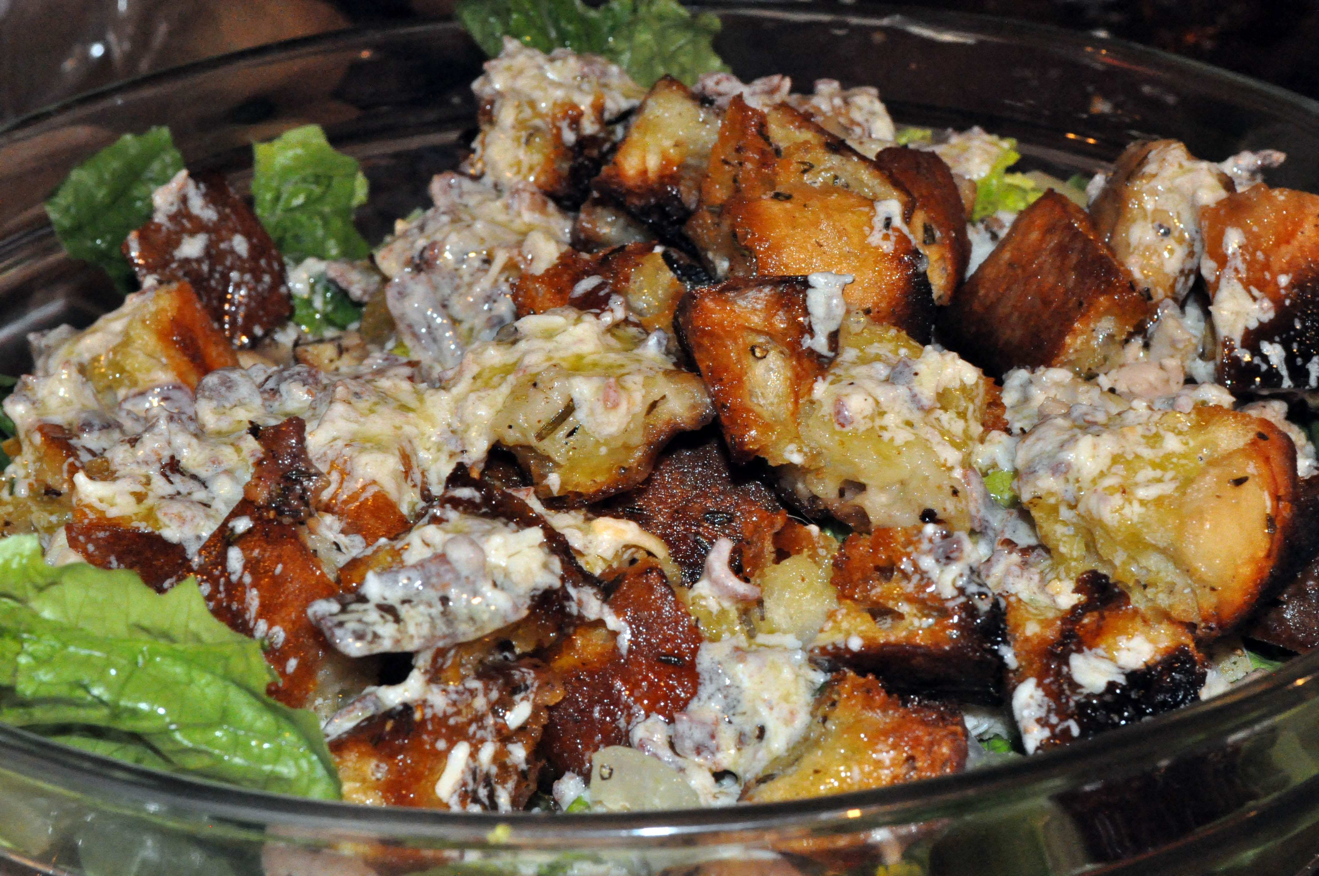 now you are ready to add the croutons and the awesomeness that is this dressing.