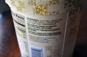 So when I got some gourmet goat’s milk ice cream in the mail, I was very interested and tried to suppress my excitement. I like goat’s cheese, so why not?