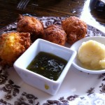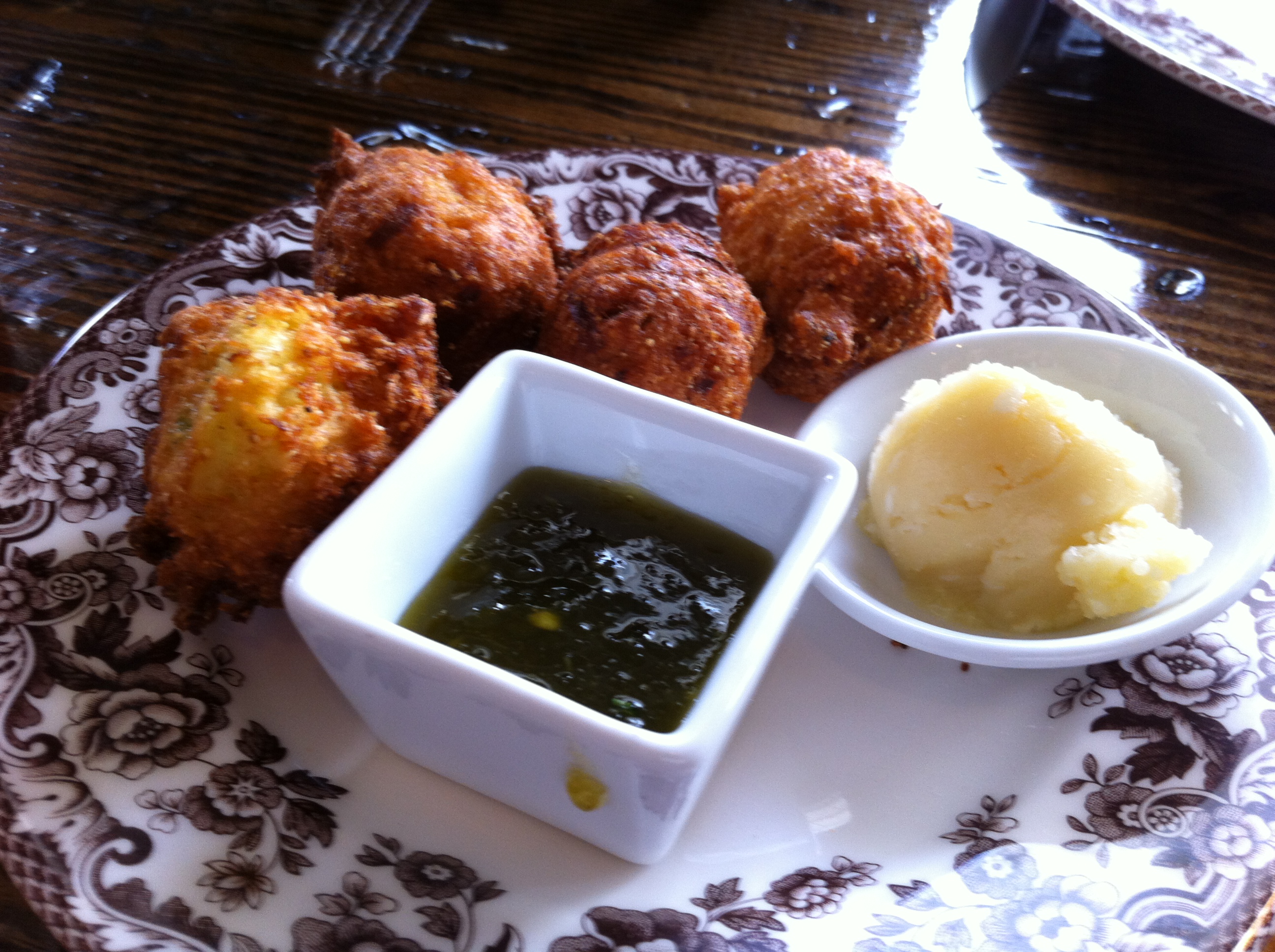 Corn fritters with whipped honey butter & jalapeno jelly ($7)