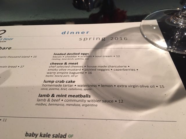The Spring menu at The Second Floor is all about taking locally sourced food and transforming it into delectable bits of fancy that dance around on your tongue. One of my favorites of the evening was the Crab and Smoked Lobster Salad, a delicious blend of juicy lobster, Boston lettuce, avocado and hearts of palm. My other favorites include the roasted chicken, pork chop and a very impressive dessert platter.