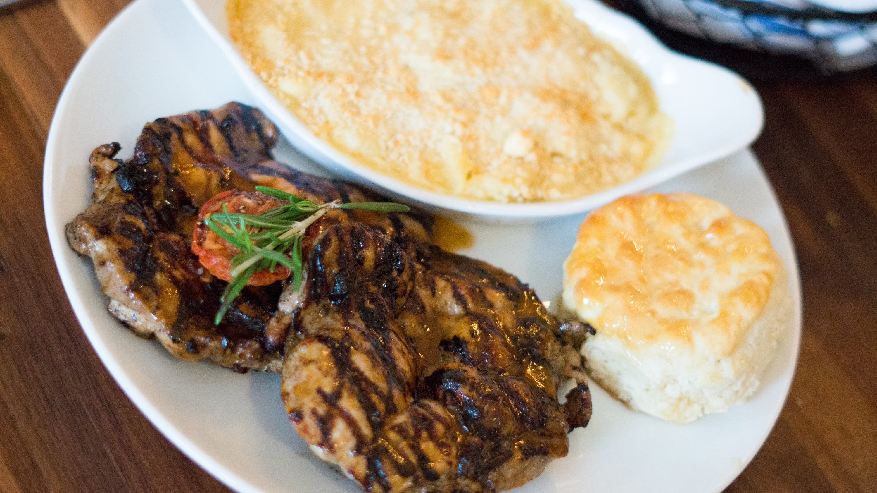 Their menu was extensive but not overwhelming. Need something light? They have soups, salads, and other vegetarian options. Want to be indulgent? Try Creamy Brie Mac n’ Cheese or the bread pudding. Want something that wasn’t born with feathers? They have shrimp and grits, meatloaf, and others! For a starter, we had Chickarones (fried chicken skins with chili lime salt). Growing up I was always the kid that stole the fried chicken skins off of everyone else’s plate, so I kind of consider myself an expert in this field. They were cooked perfectly and did not feel greasy or heavy– I just wish they offered this in other flavors!