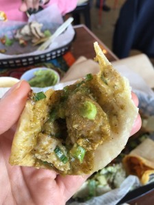 - Pollo Fantastico: Free-range chicken topped with roasted green chile sauce has never tasted better. This taco is simple, but the roasted green chile provides a bit of heat alongside a rich, roasted green chile