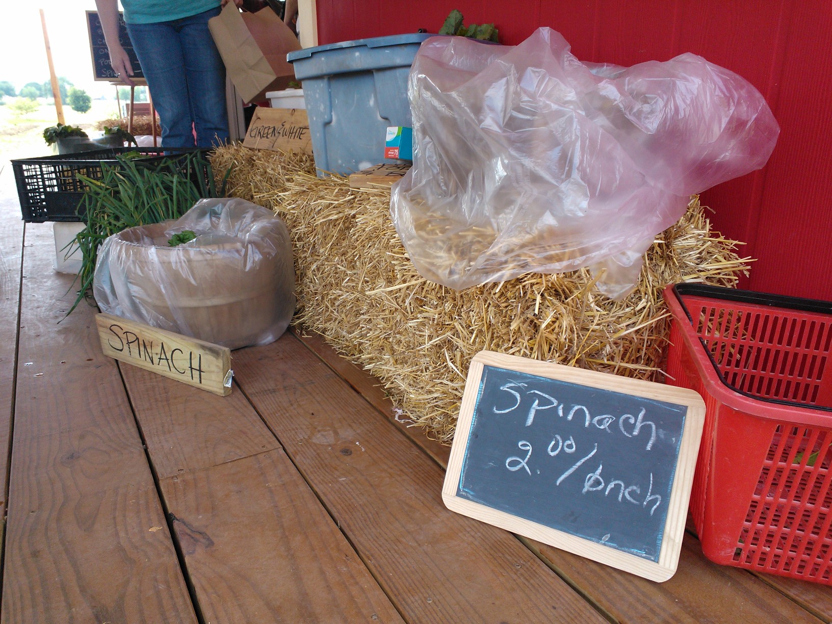 Fresh from the farm were beets, spinach, onions, cilantro, potatoes, and chard. A box of peaches also rested near the bounty of veggies that were picked before all of us from the city showed up.