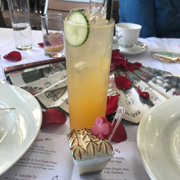 If you have ever been to Northpark, I would be sure to check out La Duni’s Latin Kitchen & Coffee Studio. Their restaurant is so quaint and detailed like. If it is a nice day outside, you’d appreciate every hint of decor that they set out. It was such a perfect fall day with parents taking pictures of their kids in the pumpkin patch, group photo op of teens in their homecoming dresses, and live music! La Duni’s hosted a Tipsy Tea Party led by Hendrick’s Gin Brand Ambassador Mattias Horseman. The theme of this evening’s event was Alice and Wonderland. When first arriving, it was like I stepped into the movie. The first Tea we tried was Alice Tea.