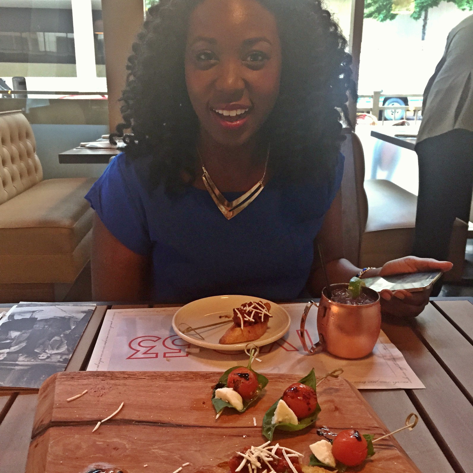 Upon being seated, I was greeted by a friendly waiter named Dallas. He was very knowledgeable and made some great recommendations. My friend and I started off with two drinks, The Italian Mule and the North Texas Breeze.